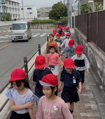 最初に学校の周りに出るまでを学習し、その、みんなの学びを動画に撮っていました。