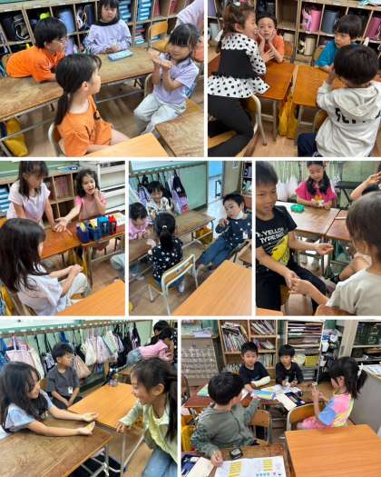 6つのおはじきを左右の手に持ち、片っぽを見せて、残りの数をあてっこします。