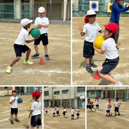今日は、ボールを持っている人が鬼で、それを逃げる人が取ると鬼ごっこスタートという、ゲームをしました。