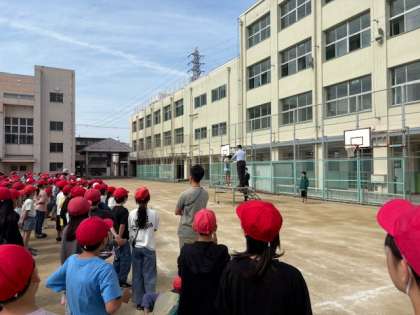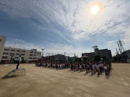 今朝の児童朝会では、転校生の紹介をしました!