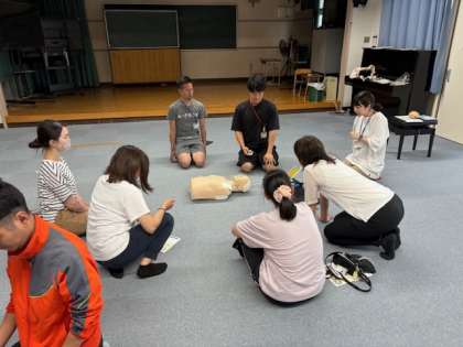 学校では万が一の事故に備え、救命処置の手順を毎年確認しています。