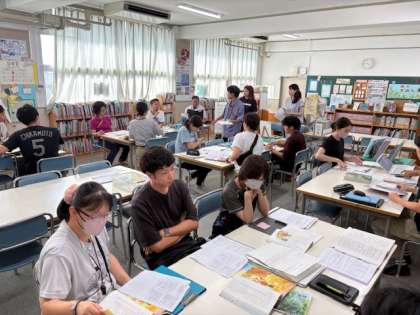 グループに分かれ、今日の授業について意見交換を行いました。