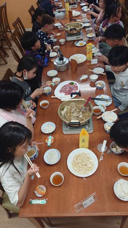 みんな「おいしい!」とすごい勢いで食べています。にぎやかで楽しそうな食事の様子です。