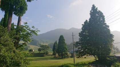 今日のハチ高原はいい天気です。昨日登った鉢伏山もきれいに見えています。鳥の鳴き声がさわやかです。
