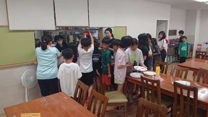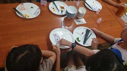 みんなで協力しておいかった朝食の片付けをして「ごちそうさま」をしました。食事係が最終の片付けをしました。