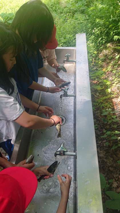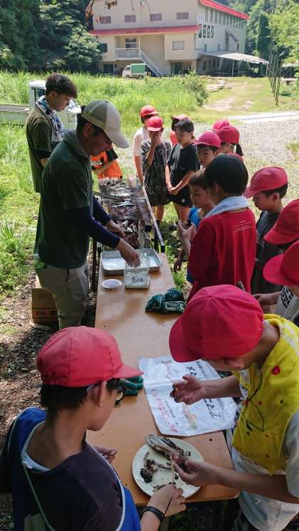 つかまえた魚は、しめて、洗って、焼いて、命をありがたくいただきます。