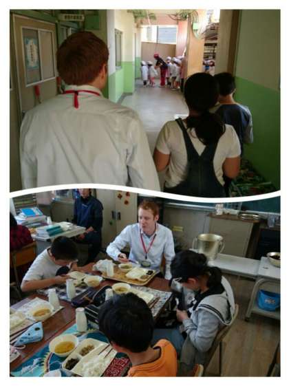 給食も各教室をまわり、子どもたちとコミュニケーションをとりながら食べています。