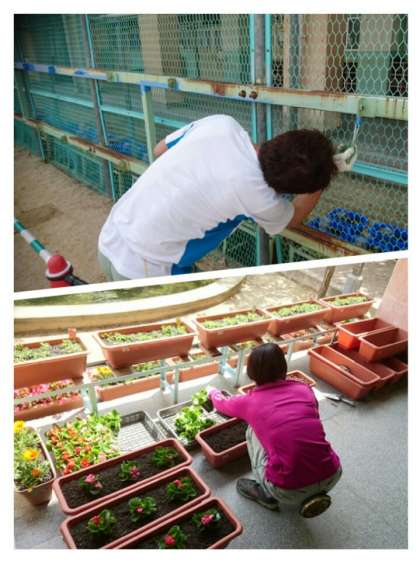 備品の修理だけでなく、花を植えたりお世話をしたり、学校全体の美化に努めています。