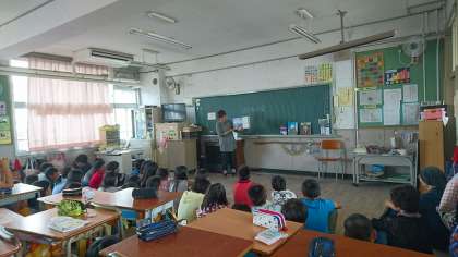 住吉図書館のボランティアの方に来ていただいて、絵本の読み聞かせをしていただきました。