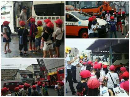 山之内保育園、住吉消防署、関西電力、大和川中学校に分かれて見学します。