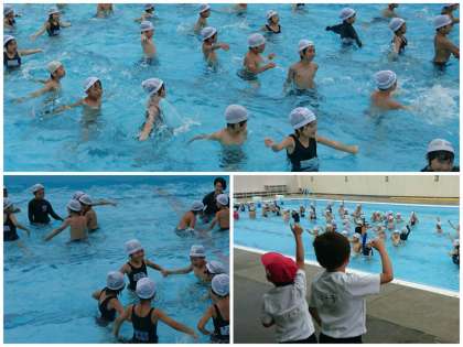 かがむと顔が水に入ってしまいますが、楽しく踊っていて気にならない子もたくさんいたようです。