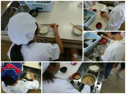 「こんな風にやってた。」と、おうちの方の真似をして味噌をとく児童もいて、子どもはしっかり見てるんだなぁと感心しました。