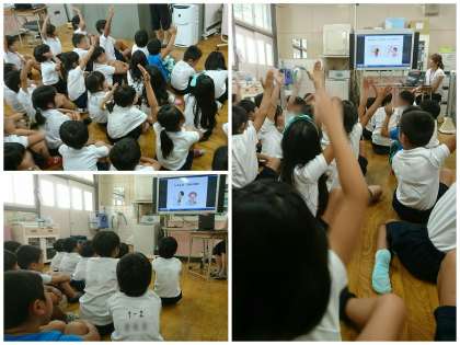 夏休み中の生活習慣の振り返りをしたりトイレの使い方をおさらいしたり、保健指導を受けました。