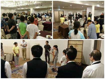 スペイン村での活動は、後半、雨に降られ濡れてしまったので、スケジュールを変更し、入浴してから開舎式を行いました。