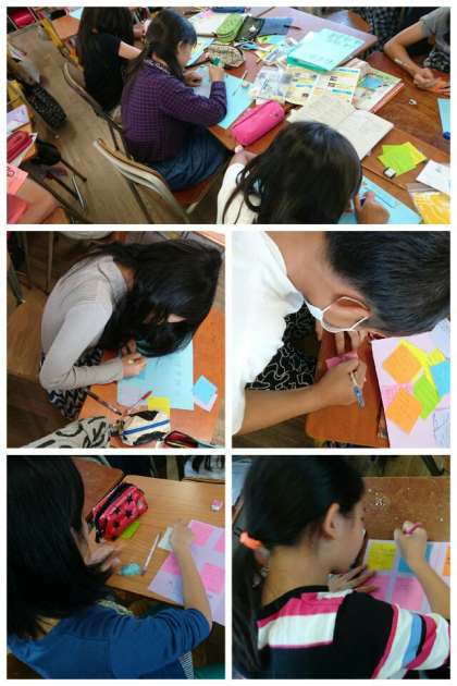 修学旅行の思い出をカードに綴って友だちと交換します。