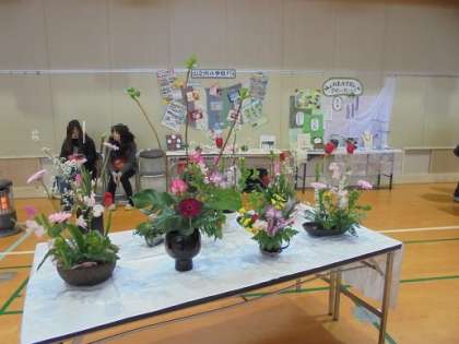 展示コーナーとして生涯学習フラワー・ビーズ・実用書道・てんこく、PTAからポーセラーツ・フォトフレーム・広報新聞等が展示されました。