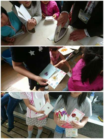 放課後に、育てた花で押し花作りをしました。