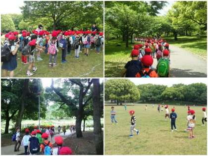 広い芝生の広場で楽しく気持ちよく遊んでいます。