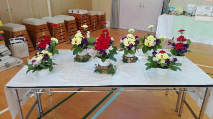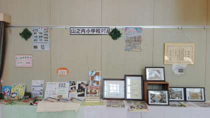 展示コーナーでは生涯学習よりフラワー・ビーズ・実用書道・てんこく・PTA成人教育委員会の作品・PTA活動の様子