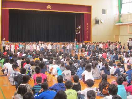 また、児童会からは校歌の歌詞が書かれた紙がプレゼントされました。