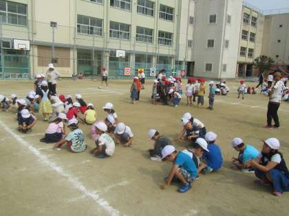 運動会を控え、運動場の整備のひとつとして、石拾いをしました。