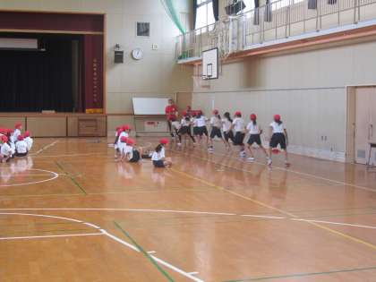 ソフトボール投げ、立ち幅跳び、握力、反復横跳び、長座体前屈、上体起こしです。