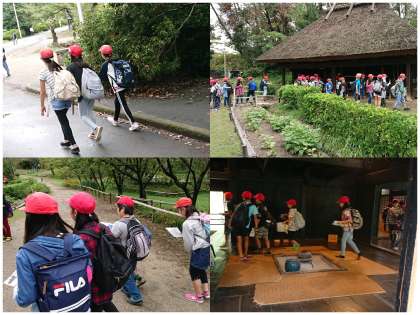 服部緑地では、グループごとにオリエンテーリングをしたり、古民家の見学をしたりしました。