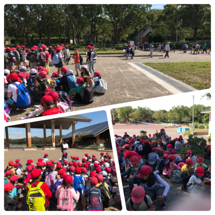 ウォークラリーが始まりました。グループで協力してゴールを目指します。