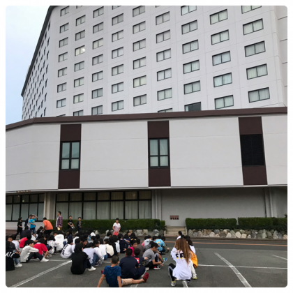 ホテル前の駐車場に避難します。この後、夕食に行きます