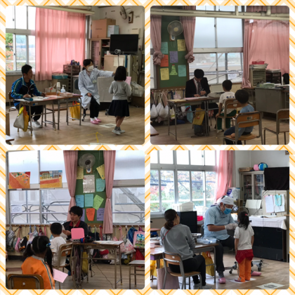 来年度、入学してくる子どたちの健診がありました。いささか緊張気味の子どもたちでした。