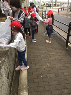 1年生は地域清掃として、主に学校のまわりのごみ拾いに出かけました。