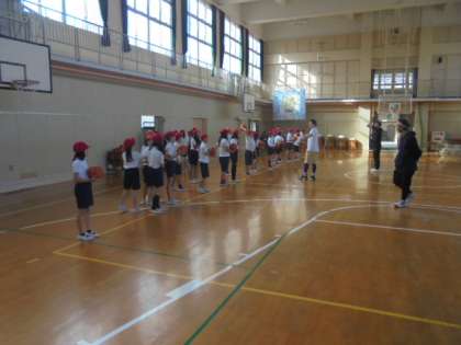 5年生は夢授業としてバスケットボール教室が行われました。