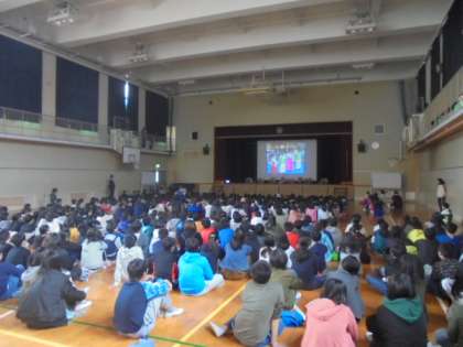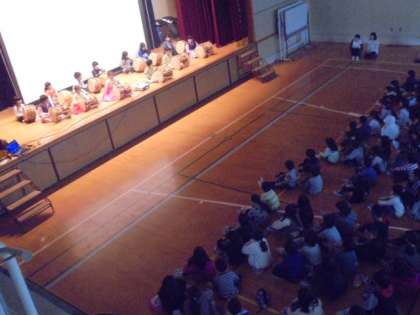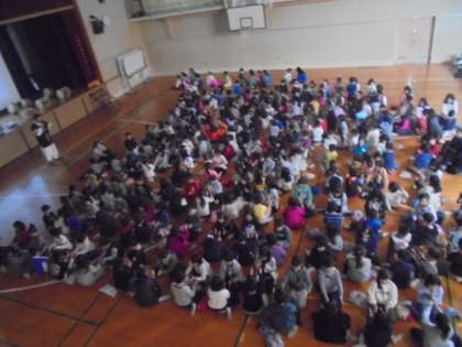先日、応援会として見に来た人たちには発表しましたが、今日は全校児童です。