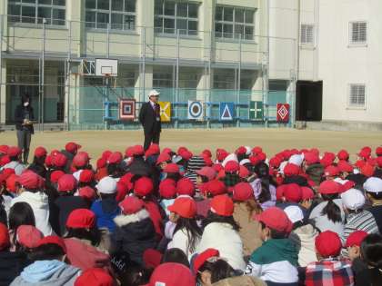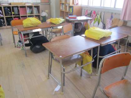 児童が自主的に避難する訓練ということで、休み時間中に行いました。