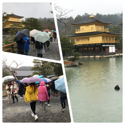 雨の中、映える金閣寺