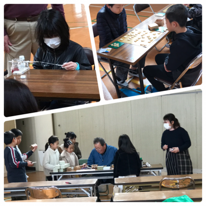 将棋、てんこく、糸つむぎ、ビーズ、おもちゃ作りなどの体験コーナーがあり、生涯学習での作品も展示されていました。
