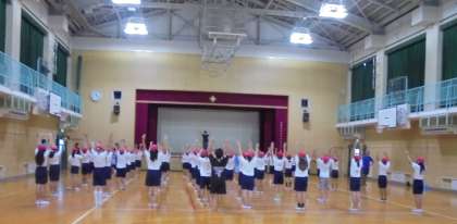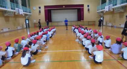 整列、ラジオ体操、走る運動、バレーボールなどを教えていただきました。