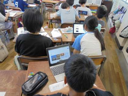 6年生は、社会の日本の歴史の学習で、各自で調べたことをノートにまとめていました。