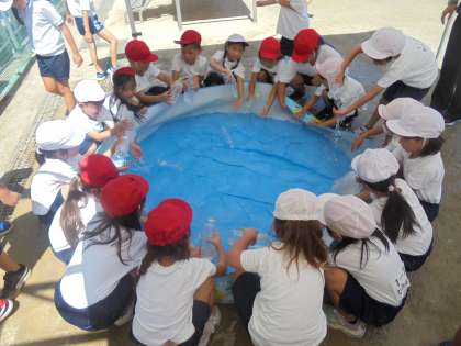 1年生全体で、4時間目に生活科の「すずしくあそぼう!」の学習をしました。