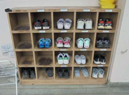 2年生も、毎日自分たちでくつ箱のくつをきれいにそろえています。