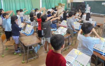 クラスのみんなでとても楽しそうに、きれいな発声で歌うための練習や、鍵盤ハーモニカの練習をしました。