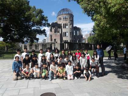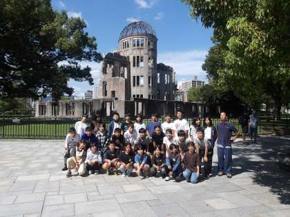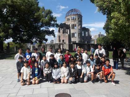 原爆ドームの前でクラスごとに記念写真を撮りました。