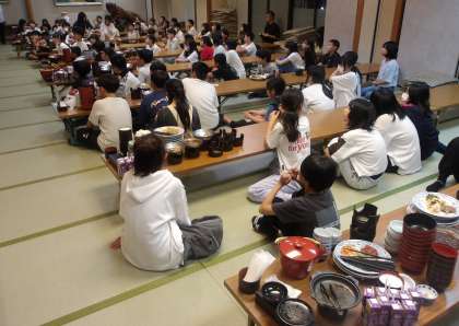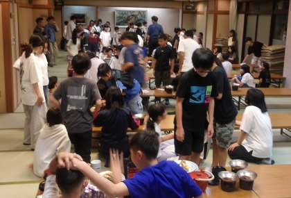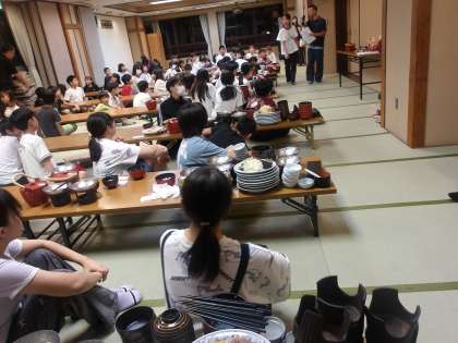 おいしい夕食をいただいた後は、みんなできれいに片づけをして、この後の活動について先生の話をしっかり聞きます。