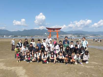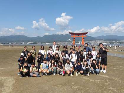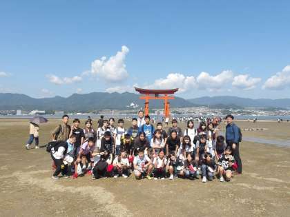 有名な鳥居を背景に、クラスごとに記念写真の撮影をしました。
