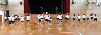 先生の動きをまねしながら、楽しく踊っています。