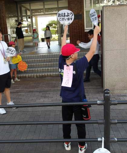 運営委員の今日の担当が、元気よく大きな声ですばらしいあいさつを何度も何度も続けています。