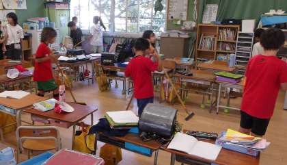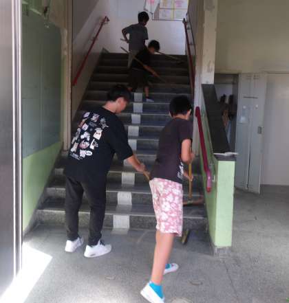 今日は児童集会の時間に「ピカピカ集会」として「たて割り班」で担当の場所を掃除しました。