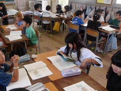 3年生は1組も2組も国語の学習で、班で話し合う学習をしています。