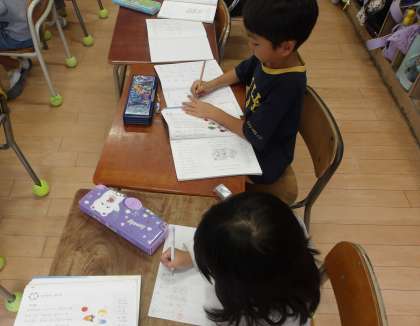 えんぴつの持ち方にも気をつけ、よい姿勢です。