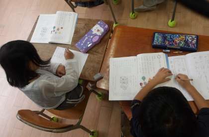 1年生が漢字の学習をしています。